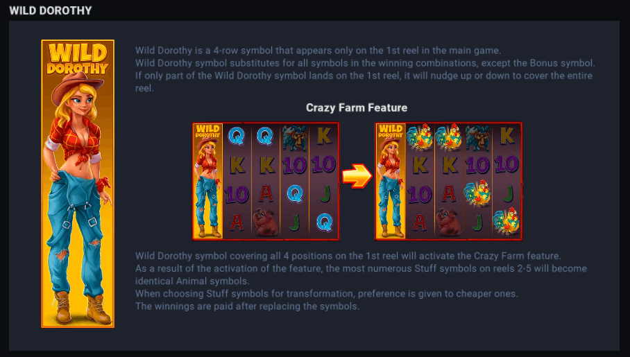 Wonder Farm จะพาทุกท่านไปสนุกสนานในฟาร์มของเธอ เธอเป็นแม่มดผู้ทรงพลังที่สามารถใช้พลังเวทย์มนตร์ช่วยให้นักเดิมพันร่ำรวยได้แบบไม่อั้น เพื่อเตรียมพายแสนอร่อยที่มีไส้ลึกลับที่สามารถทำให้พายุเฮอริเคนที่รุนแรงที่สุดก็อ่อนน้อมถ่อมตนได้ ดังนั้นอย่ารอช้า! รีบเข้ามาเยี่ยมชมฟาร์มวิเศษของโดโรธีให้เร็วๆ เลยตอนนี้
